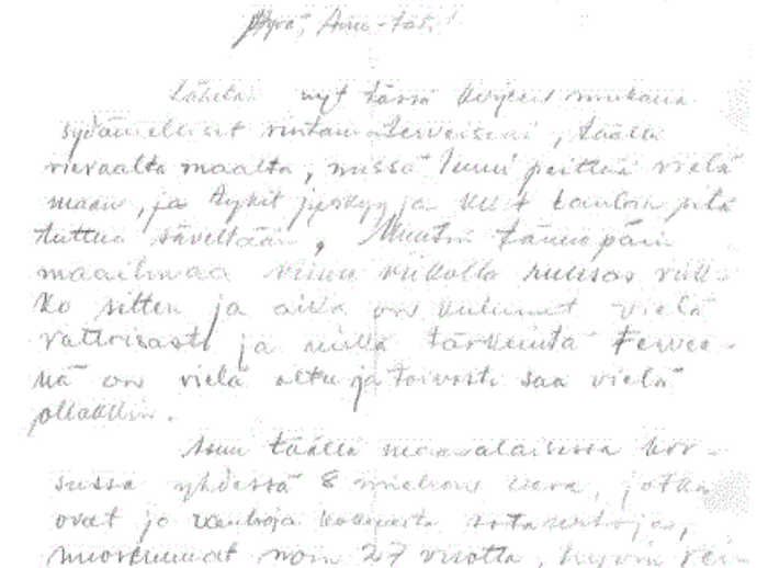 Isäni Pekka Aarne Johannes Örmän kirje rintamalta Korsussa 6/5 -44 * Hyvä Aino täti ** Lähetän nyt tässä kirjeen mukana sydämmelliset...
